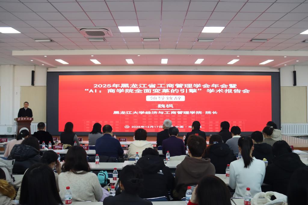 2025年12月17日,2025年黑龙江省工商管理学会年会暨“AI:商学院全面变革的引擎”学术报告会在我校召开,黑龙江大学经济与工商管理学院院长魏枫教授,原哈尔滨市体育局体育产业处处长王东升,黑龙江省工商管理学会会长程晓多教授,黑龙江省工商管理学会副会长、哈尔滨工程大学经济管理学院、省级智库执行副主任郭韬教授,黑龙江省工商管理学会副会长、哈尔滨工业大学经济与管理学院、战略与创新系主任吴伟伟教授出席会议,学会会员代表、理事、常务理事共计172人参加会议。