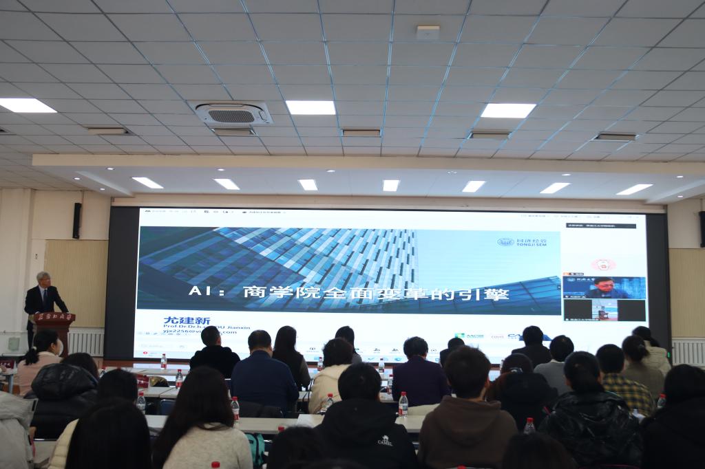 本次年会邀请到同济大学尤建新教授作《AI:商学院全面变革的引擎》主题报告,尤建新教授分别从时不我待:AI改变了商学院生态、故步自封:商学院的发展困境、脱胎换骨:商学院亟待全面变革、未来展望:AI与商学院的共生进化四个方面阐述AI如何成为商学院全面变革的引擎。