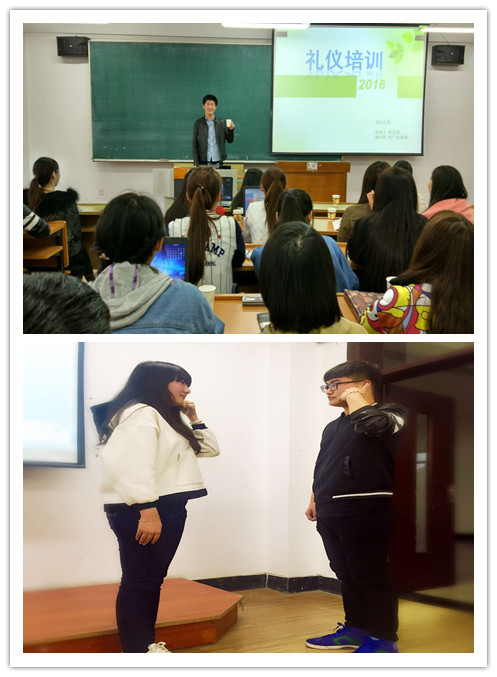 接下来,武广龙同学对第五届全体青协成员进行了人事制度的讲解,详细讲述了评分分配、缺席权值及注意事项等。鼓励大家重视学院青协志愿服务活动、学院青协例会、职业技能培训以及校内外志愿服务活动。紧接着由经管青协主席武广龙、14级人力资源管理专业朱明、张立强同学共同对全体青协成员进行礼仪培训。以情景剧的表演延伸出了沟通礼仪、名片礼仪、餐桌礼仪的相关知识,全体青协成员报以热烈的掌声,脸上洋溢着温暖的微笑。而后,经管青协副主席王帅以及活动推进部部长涂佳丽对大家进行了策划培训,通过实际策划的展示让大家深入了解了完整策划的构成以及组成要素。
