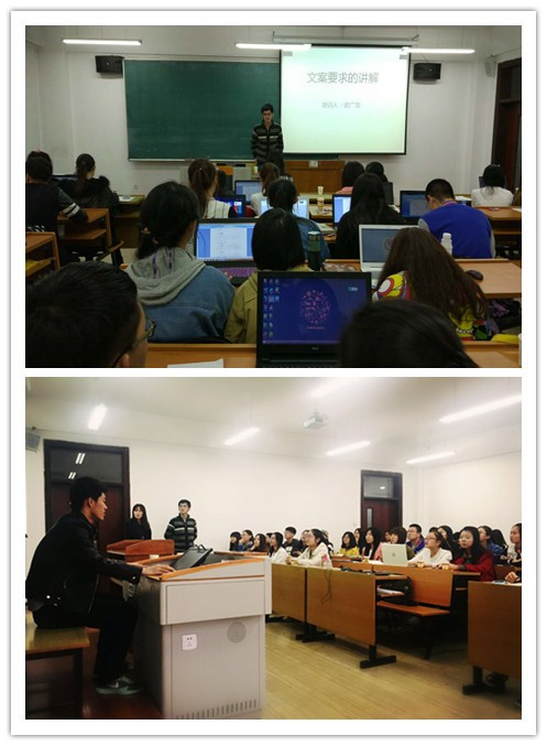 最后由经管青协主席武广龙对大家进行实际文案操作的培训,将理论运用于实际,并细致规范了文案要求,迈出了青协细节上的重要一步。