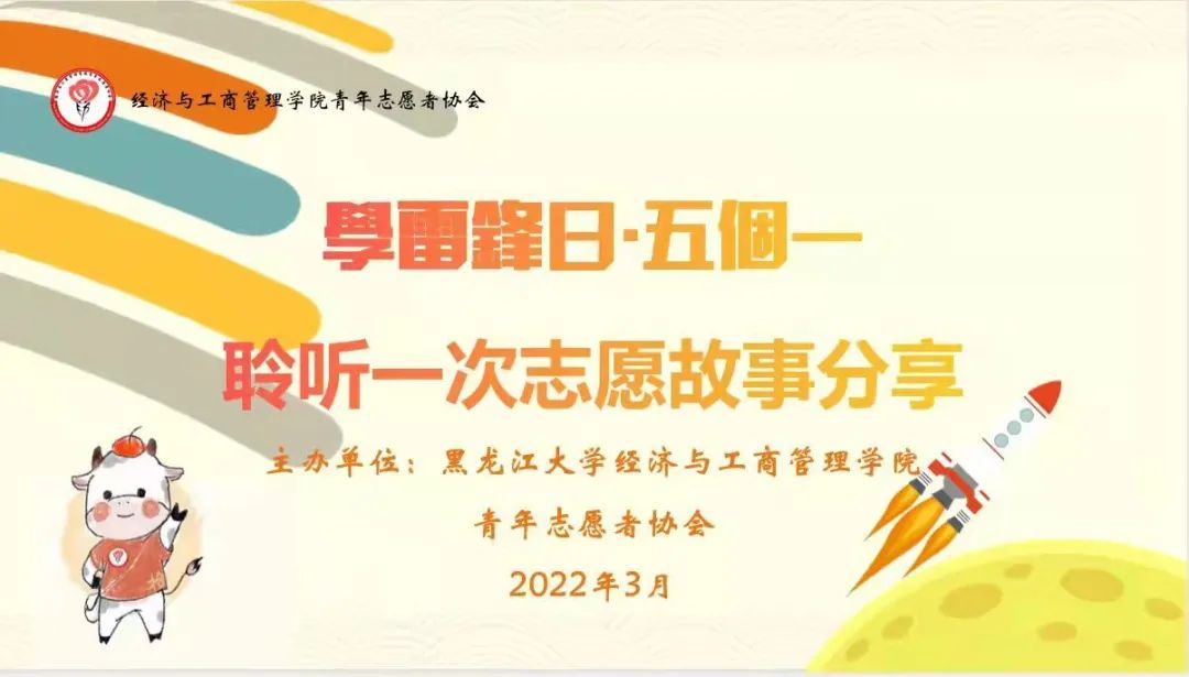 为深入学习贯彻习近平总书记关于青年工作的重要思想和志愿服务的指示精神,鼓励广大青年学生积极投身志愿服务事业,以实际行动庆祝建团百年,经济与工商管理学院青年志愿者协会于2022年3月开展了以“学习雷锋精神,争做时代先锋”为主题的“五个一”系列活动。本次活动历时20余天,共有190余名学生参与其中,志愿服务总时长达1500余小时,累计征集志愿日记60余篇,开展关爱行动10余次,清扫校园卫生4次,用行动践行“请党放心,强国有我”的青春誓言。