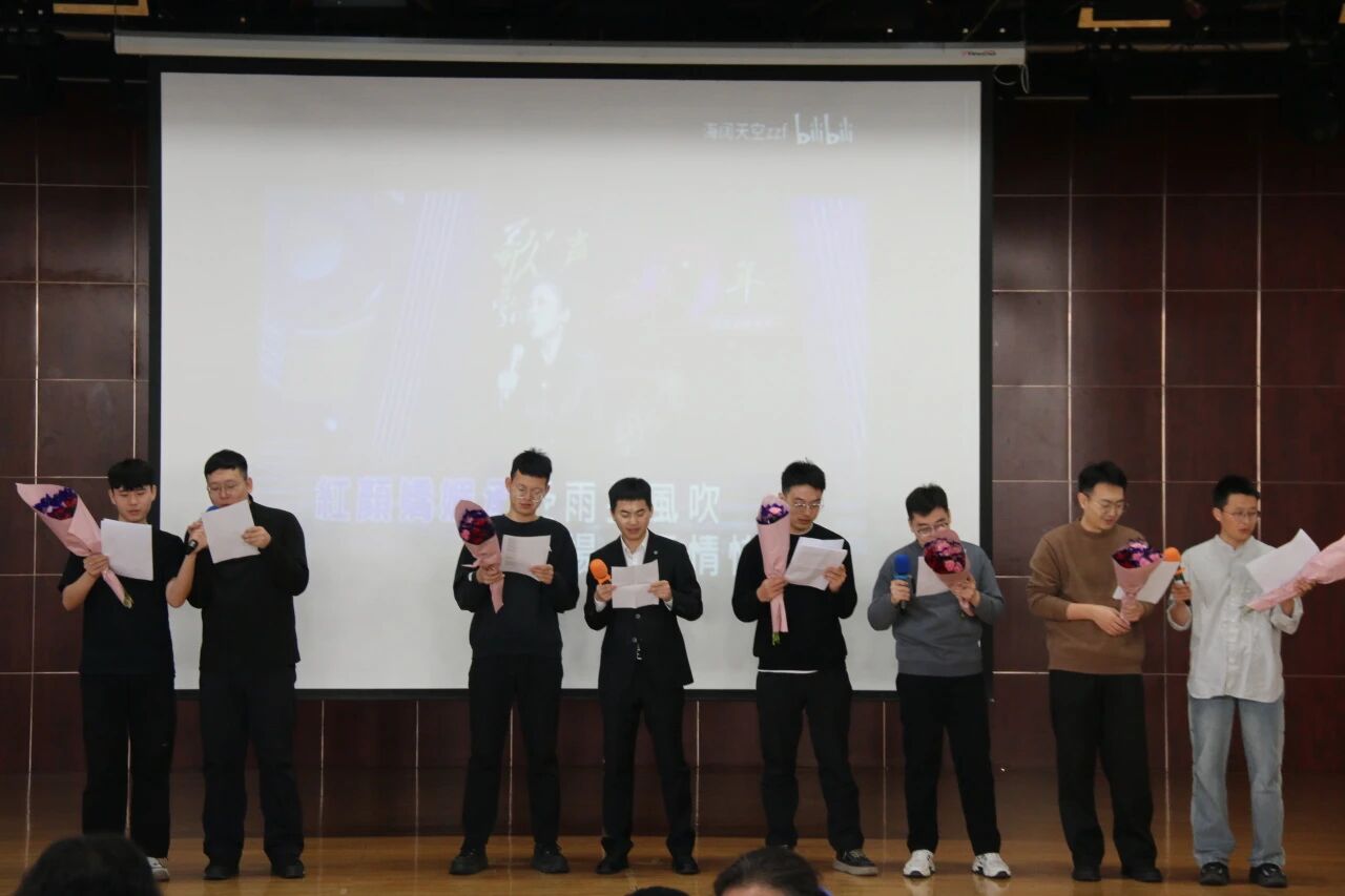 在节目环节,学院的男教职工们精心编排了诗朗诵《巾帼芳华·师者之光》和歌曲《铿锵玫瑰》等精彩表演,用深情的语言与动人的歌声,向身边的女同事们致以最诚挚的节日问候,彰显了对女性力量的敬意与赞美。现场掌声不断,气氛热烈而温馨。