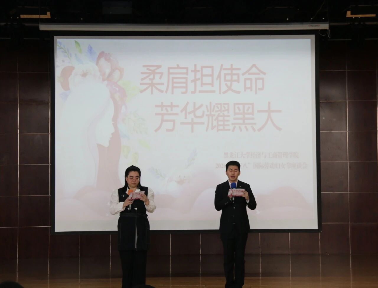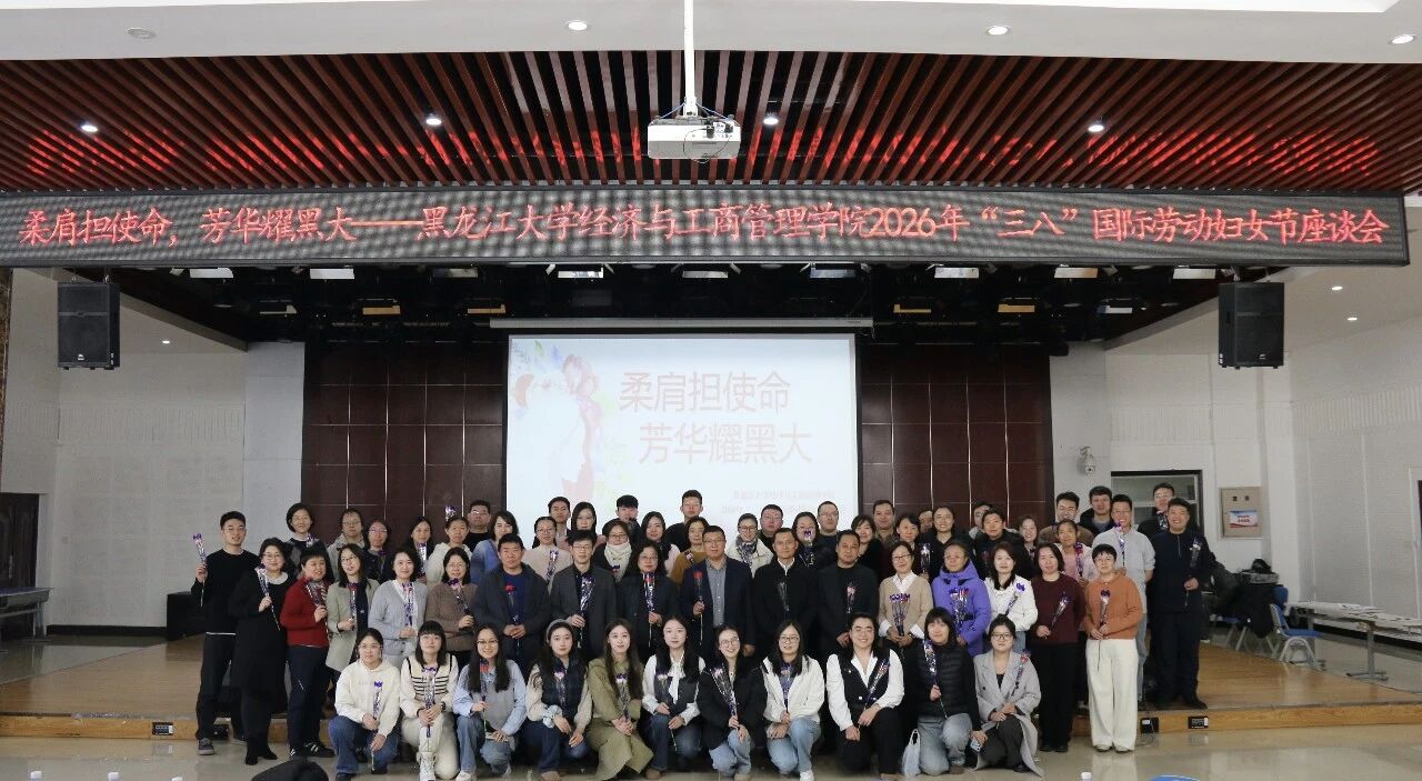 春暖巾帼,芳华正好。在第116个“三八”国际妇女节来临之际,为致敬女教职工在教育教学、科研育人、管理服务等岗位上的辛勤付出,2026年3月6日下午,经济与工商管理学院精心策划并开展了“柔肩担使命,芳华耀黑大”主题活动,学院领导班子、工会成员及全体教师欢聚一堂,为全院女教职工送上节日的祝福与关怀。