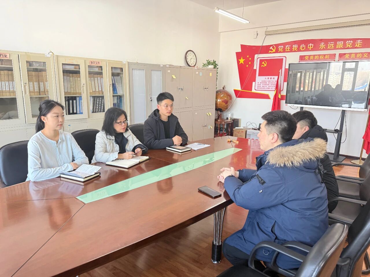 为深入贯彻落实国家关于促进高校毕业生就业工作的决策部署,深化校企合作,实现人才培养与行业发展的互利共赢,2026年3月5日,招商银行哈尔滨分行一行莅临经济与工商管理学院,双方在学院会议室举行访企拓岗专项座谈会。学院党委副书记付丽、2026届毕业生辅导员宋天龙、李帛芮、招商银行哈尔滨分行人力资源部校招经理潘海洋、招聘专员刘健参加此次座谈会。