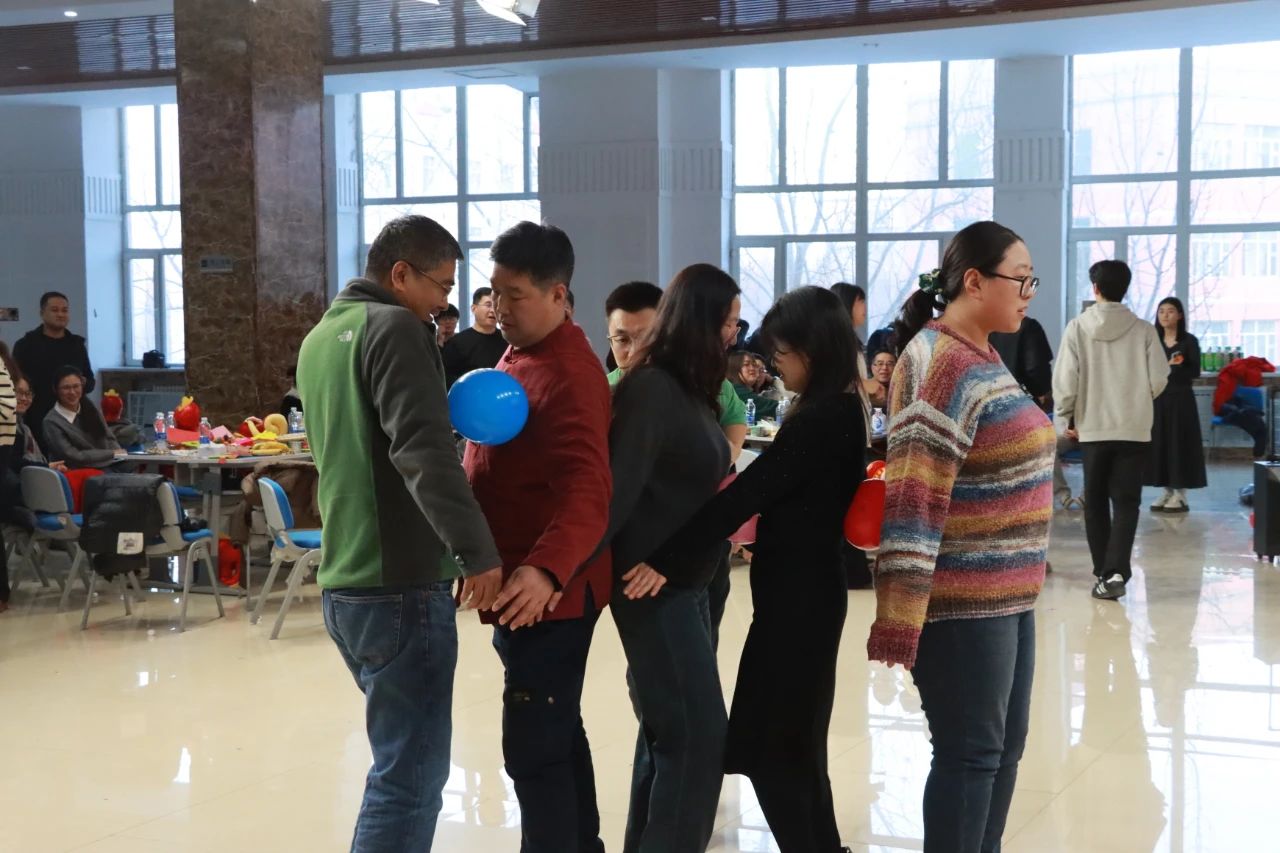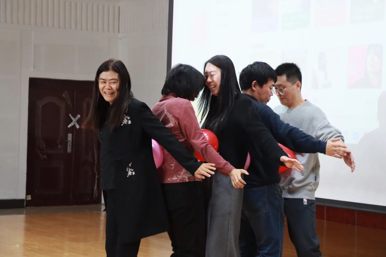 教师们全身心投入到“蒙眼互打”“蒙眼踏步”“挤气球”等趣味游戏中,大家踊跃互动,现场气氛热烈,欢笑声此起彼伏。