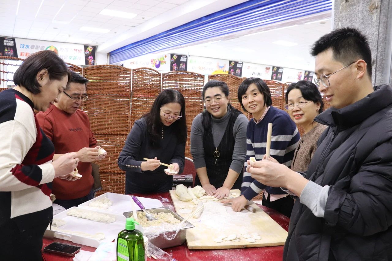 此次联欢会的特别环节——包饺子,更是让温暖与欢乐满溢。活动现场,面粉与欢笑齐飞,饺馅共情谊一味。教师们纷纷挽起袖子,大显身手,平日里站在三尺讲台上传道授业的老师们,此刻围在一起,你一言我一语,一边互相切磋包饺子的手艺,一边交流工作中的心得感悟,欢声笑语凝结成了冬日里最温暖的祝福。